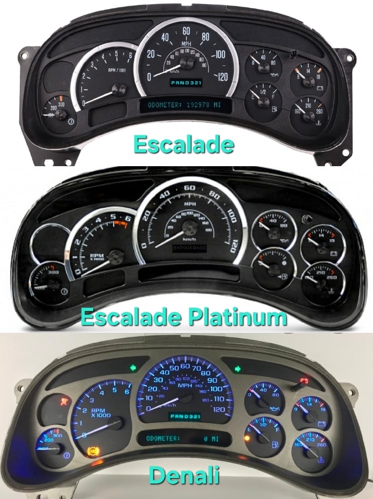 *OEM Escalade, Escalade Platinum, or Denali gauge face included.