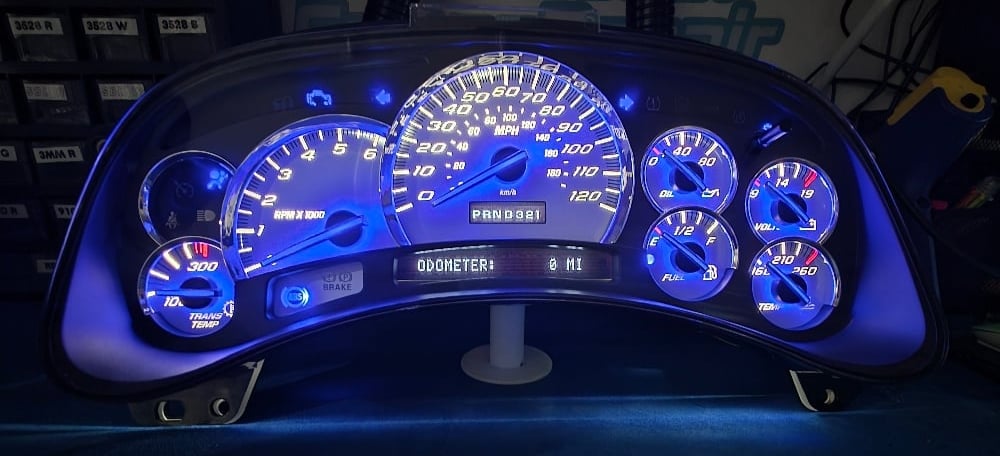 This modification will add independent LED backlighting for each needle, (6 or 7)